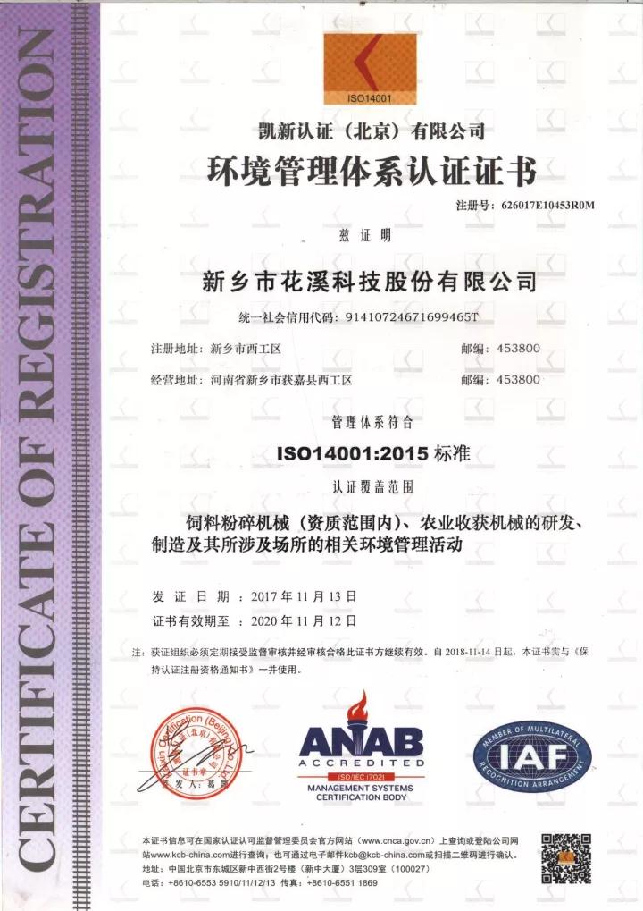 2017年11月13日,花溪公司獲得了環(huán)境管理體系(ISO14001)認證證書和職業(yè)健康安全管理體系(OHSAS18001)認證證書。
